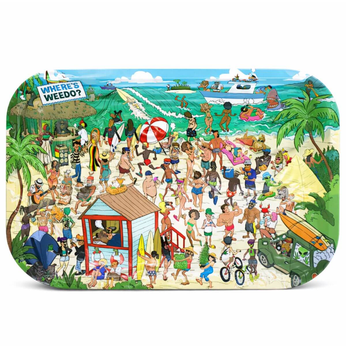 Prodotto da Best Buds, questo vassoio presenta l’illustrazione Where’s Weedo, offrendo uno stile visivo giocoso e molto dettagliato. Il