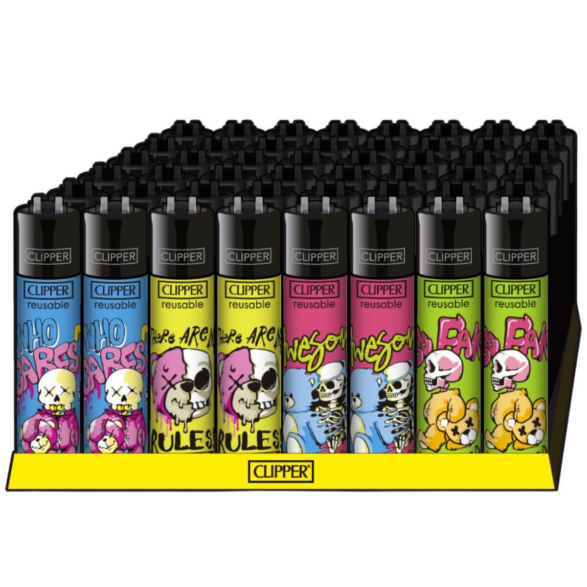 Il Display da 48 pz Clipper Classic Large Bear Skulls è una collezione di accendini a pietrina ricaricabili con design grafico a tema Bear Skulls. Prodotti nel formato standard Clipper Classic Large, questi accendini combinano costruzione resistente e grafica da collezione, rendendoli adatti a minimarket, headshop, rivenditori di tabacchi e punti vendita lifestyle.