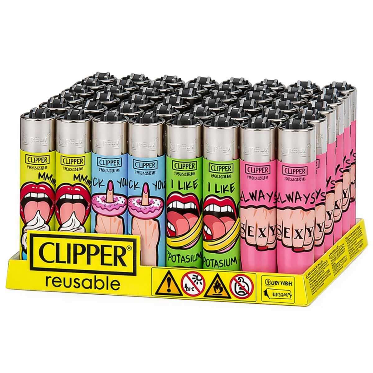 Gli accendini Clipper Classic Large Sexy combinano il noto design ricaricabile di Clipper con grafiche audaci a tema lifestyle. Realizzati nel formato Classic Large, questi accendini offrono un’accensione affidabile, riutilizzabilità e un forte impatto visivo. Fornito in un espositore da banco da 48 pezzi, questo prodotto è ideale per la distribuzione all’ingrosso e la vendita al dettaglio di accessori per adulti.