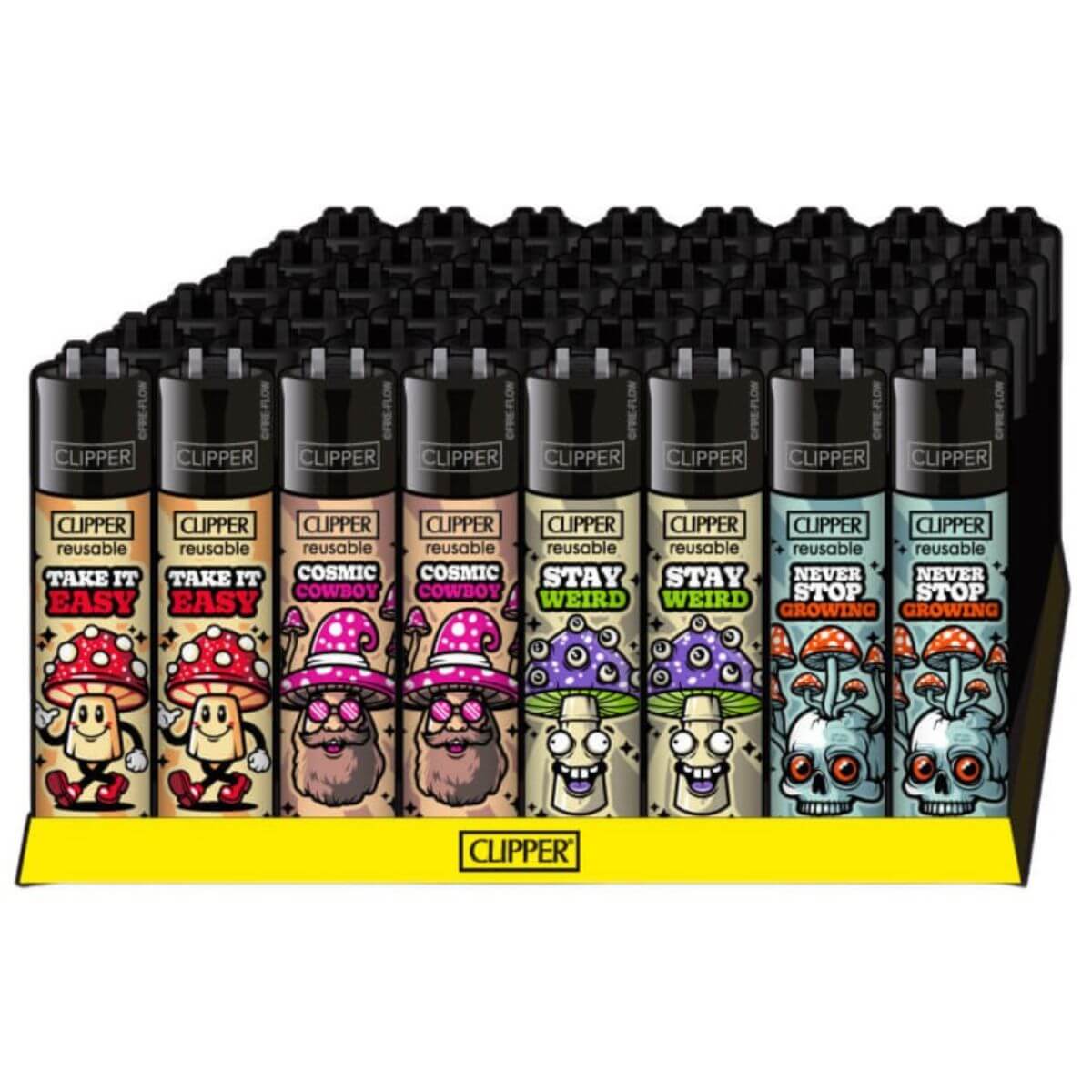 - 48 accendini ricaricabili Clipper Classic Shrooms #12 in un espositore pronto per la vendita al dettaglio