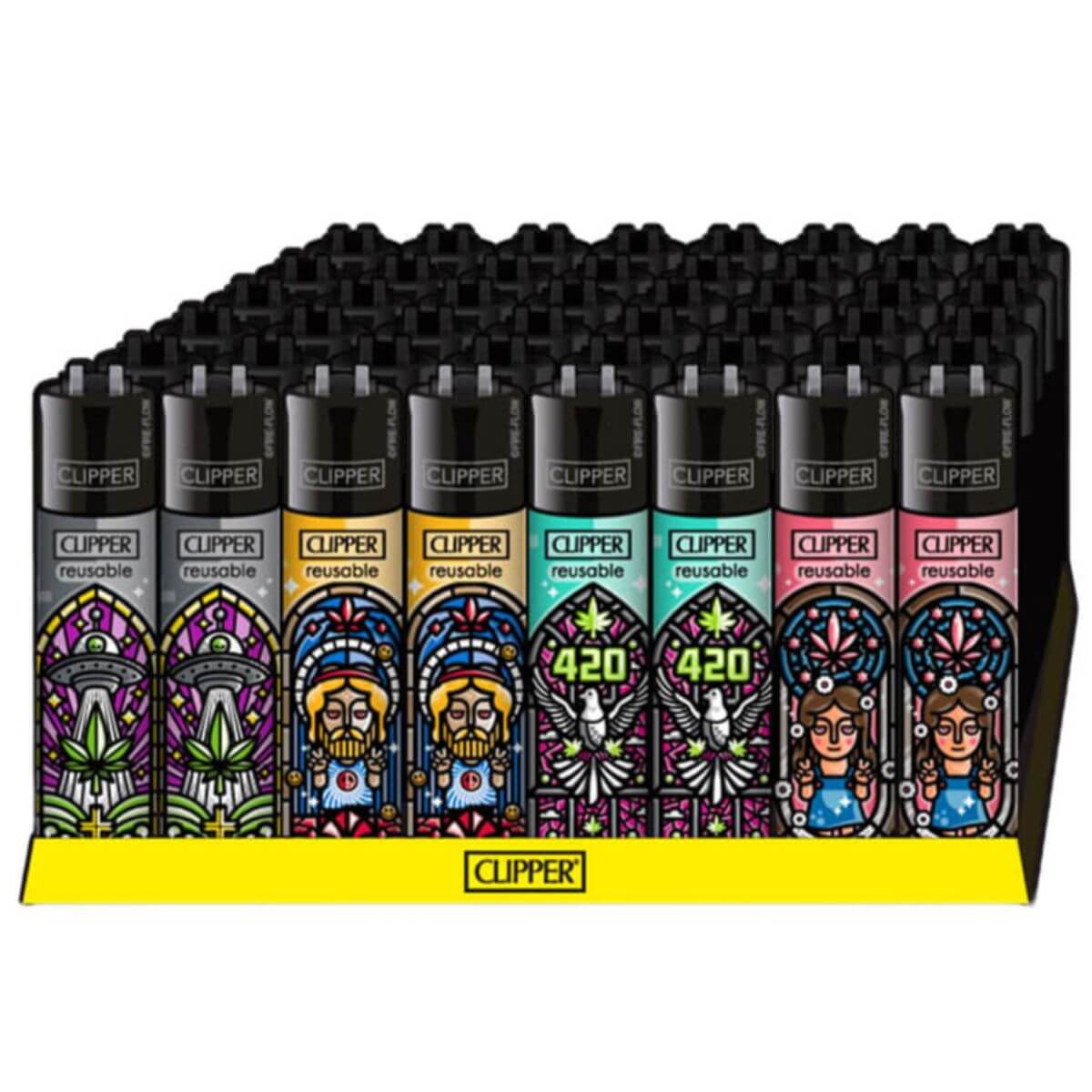 La collezione Clipper Lighters Classic Church Windows (48 pz/espositore) presenta intricate opere d’arte ispirate alle vetrate istoriate sui fidati accendini ricaricabili Clipper. Ogni pezzo presenta vivaci motivi geometrici che ricordano le finestre delle cattedrali, combinando arte e funzionalità pratica. Confezionata in un vassoio espositore da 48 pezzi, questa serie è ideale per negozi di articoli per fumatori, negozi di articoli da regalo e rivenditori di lifestyle alla ricerca di prodotti visivamente sorprendenti, da collezione ed ecologici.