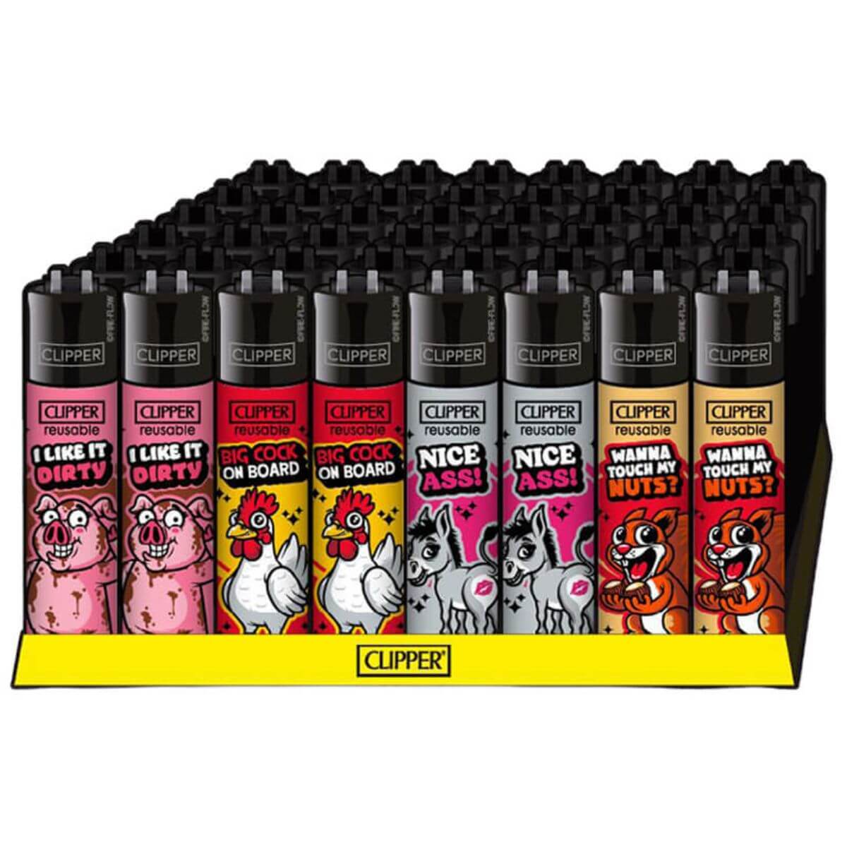 La collezione Clipper Lighters Classic Sexy Animals (48 pz/espositore) aggiunge un tocco giocoso e umoristico alla gamma di accendini affidabili di Clipper. Ogni accendino presenta audaci illustrazioni di animali con un divertente tema “animali sexy”, che unisce creatività e umorismo alla tipica durata e funzionalità ricaricabile di Clipper. Perfetto per collezionisti, consumatori lifestyle e acquirenti al dettaglio, questo espositore da 48 pezzi offre una presentazione pronta per la vendita e visivamente accattivante, ideale per negozi di articoli per fumatori, negozi di articoli da regalo e rivenditori di prodotti di largo consumo.