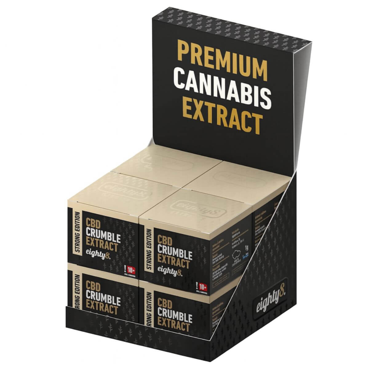 Eighty8 CBD Extract Crumble 86,21% (1g) è un concentrato di CBD di alta qualità e potenza, con una texture leggera e asciutta, progettato per utenti adulti esperti. Arricchito con un profilo terpenico ispirato a specifiche varietà, questo estratto offre un’altissima concentrazione di CBD in un formato gestibile da 1g, fornito in un espositore da 8 pezzi, ideale per negozi specializzati in CBD e store online.
