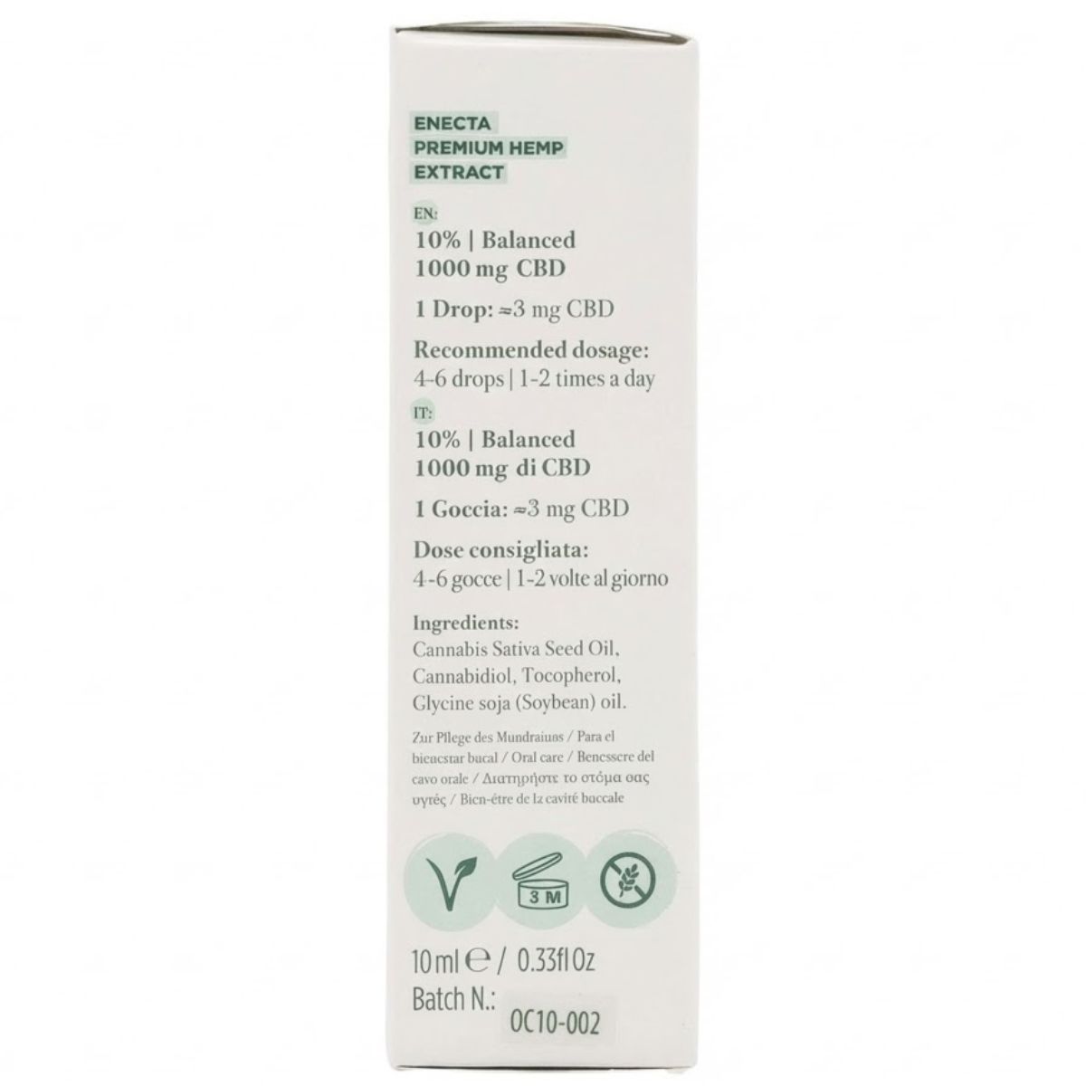 - 1 flacone in vetro ambrato da 10ml di olio CBD Enecta 10%