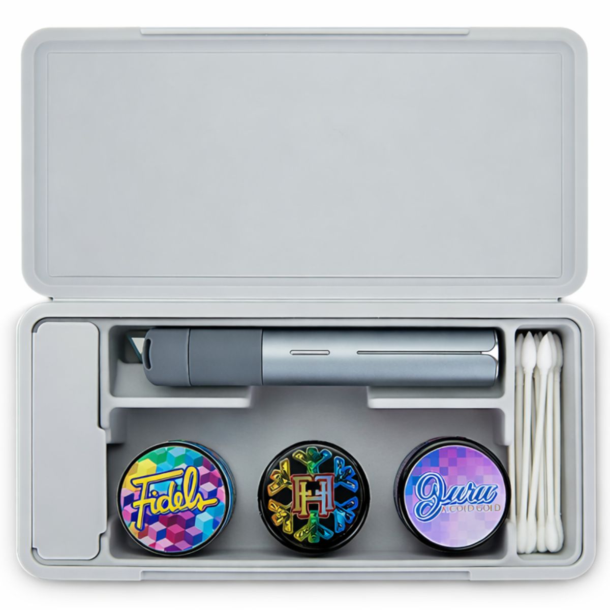 La Custodia da viaggio Puffco Pivot Pearl è un accessorio protettivo per il trasporto, progettato specificamente per l’uso con il vaporizzatore Puffco Pivot. Realizzata per contenere il dispositivo e accessori compatibili selezionati, questa custodia da viaggio consente di riporre e trasportare in modo sicuro e organizzato durante la manipolazione quotidiana o in viaggio.